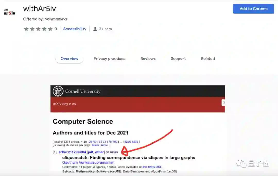 只需在GitHub中下载一个插件库(链接在文末),或者直接去Chrome应用商店下载withAr5iv。