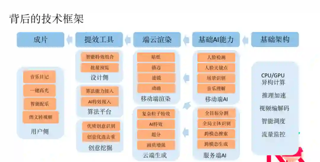 为了实现更好的辅助创作效果,小红书技术团队打造了一条比较复杂的技术链路,从基础架构、基础 AI 能力到端云协同的操作。此外,为了跟设计师有很好的协同,团队还做了大量提效工具,让设计师和 AI 的合作更加密切,更好地还原亮点效果,支撑各种各样的上游应用场景。