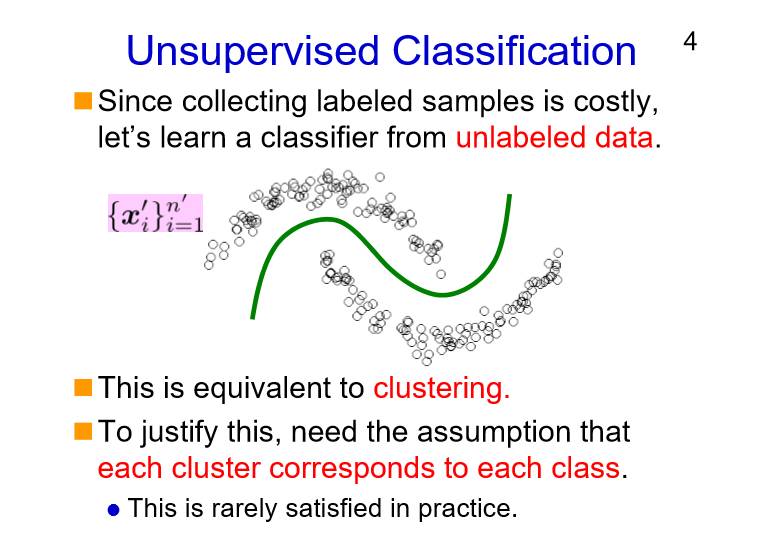 然而,想要获取大量的标注数据是非常耗时耗力的,我们希望也能够对无标注数据进行分类,这就是无监督分类的由来。