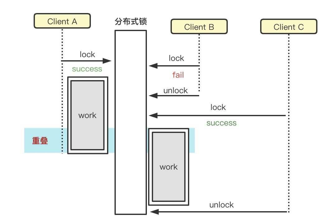 锁只能被加锁的对象释放,此处是经常出问题的点,如下图所示,A加锁被B释放锁,导致锁失效,锁被C抢占到;