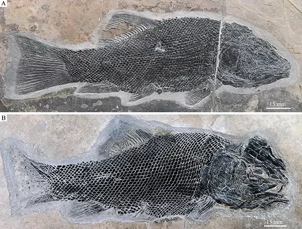 图1 两块罗平强壮鱼化石标本 (A为正型标本)(徐光辉 供图)