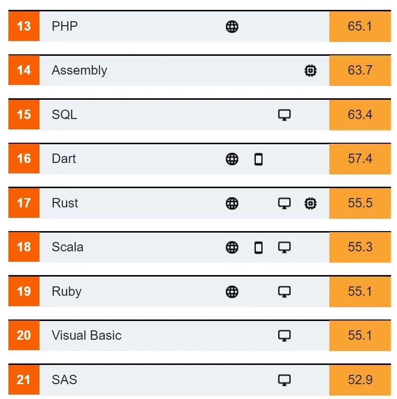 在最新一期 IEEE 编程语言排名中,Visual Basic 名列第 20 位,Python 排名第一。