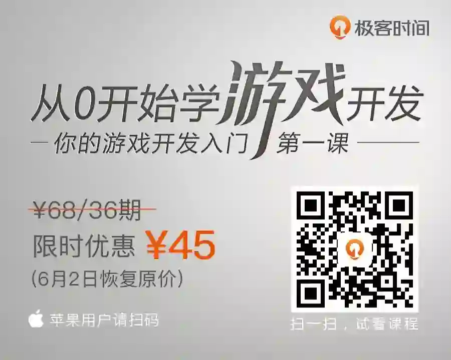 游戏行业的高回报,也吸引着越来越多的人跃跃欲试,但是成为一名专业的游戏开发之路上也暗含着无数的坑。为了帮助大家能快速入手游戏开发,我在极客时间开设了新专栏,我选择 用最简洁最自然的 Python 语言来讲这门课,从零开始,由表及里,从语言到场景,从架构到实现,最终帮助你做出一款自己的游戏。
