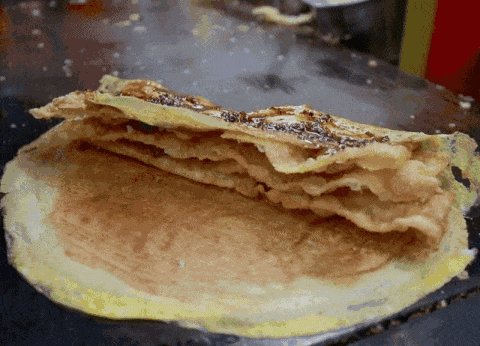 「12!」天津嫂子没看出我点单的露怯,一勺看得见颗粒的绿豆面被她们三两下推到平底锅上,金黄的鸡蛋和着葱花均匀打碎,我甚至没来得及拍一段完整的小视频。