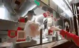 工业化大生产,唯快不破啊。我咋舌看着小伙子们高低有致地重复着前面的要求,一分钟,嘁哩喀喳出来四五套煎饼。除了煎饼,云吞、鸭货、羊汤和酸梅汤等等各种煎饼伴侣也频繁被顾客翻出牌子。