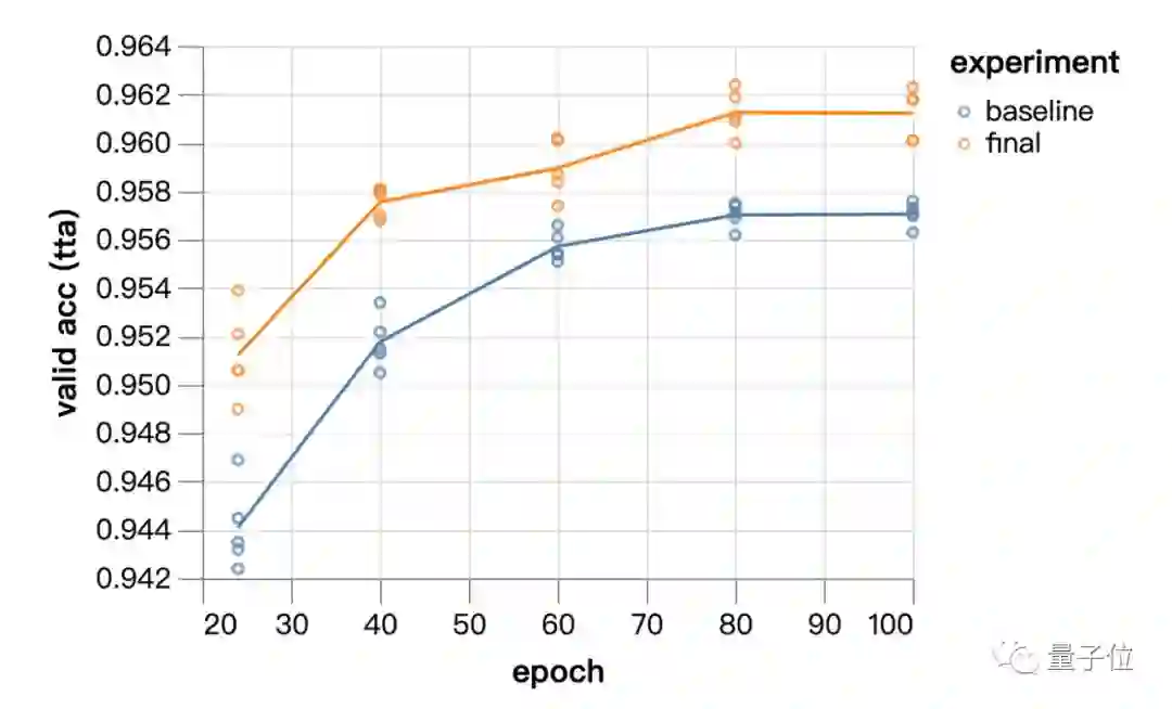 现在,虽然这一登顶成绩已经滑落到了第六位,但myrtle.ai表示在使用了与榜首Kakao Brain相同的TTA方法之后,实验模型的训练速度能降至26秒,超过Kakao Brain近10秒。