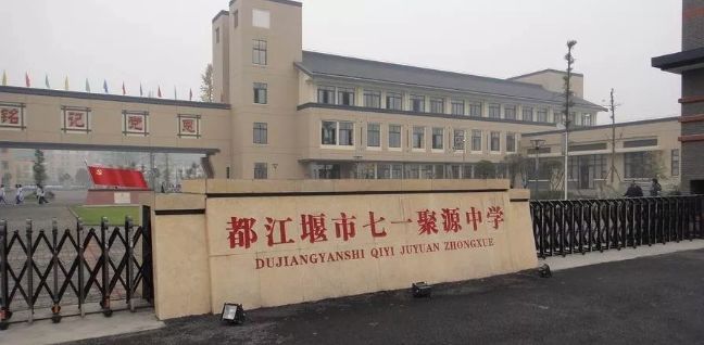 在震后,聚源中学异地重建,它目前更名为都江堰七一聚源中学,距离原址几百米,占地80亩,可容纳学生2160人,建筑抗震度达到8级。