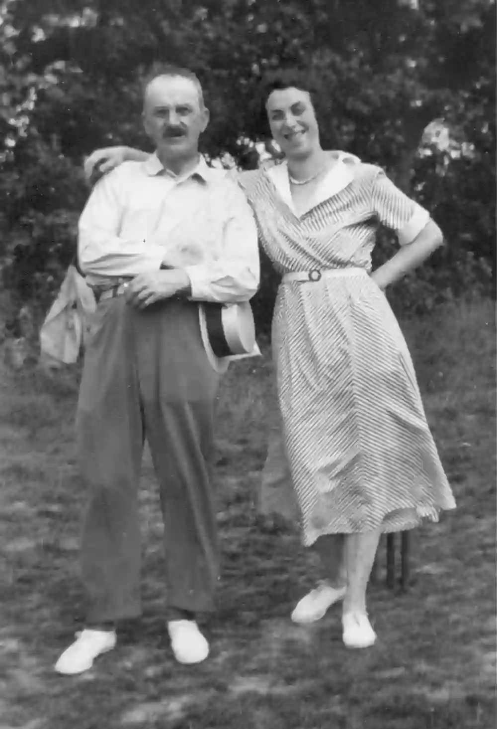 在上中学后,我有一位朋友,西里尔·琼斯,他的父母有一辆汽车。有一次,我们开车前往图德利,去看黛西姑姑,她是父亲的另一个姊妹。她和她的丈夫租种了一小块田地,但收成看上去并不好。在这之后不久,她的丈夫故去,黛西姑姑便搬过来与我们同住。她也失聪,但不是全聋,她还戴了一个非常原始的助听器。她喜欢跳舞,而我常常被她拉来当舞伴(图1.5)。像我的父亲一样,她也是一个非常乐观的人,喜欢弹奏钢琴和唱歌。