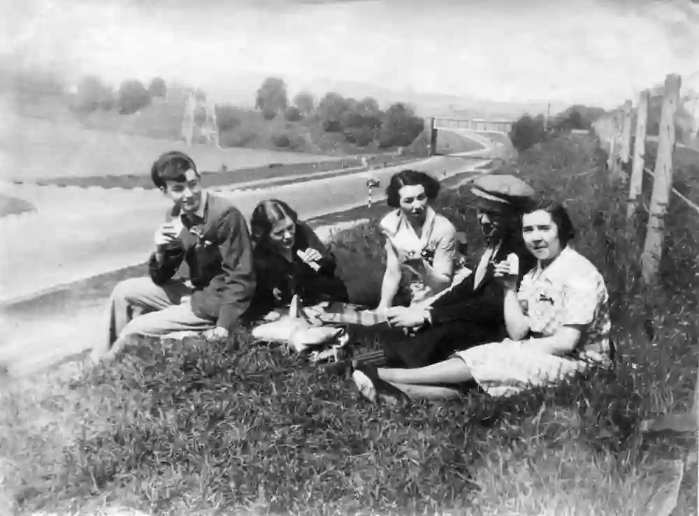 图1.6 一次家庭野餐(从左往右):我的哥哥杰克、他的妻子格拉迪丝、乔伊丝和他的丈夫艾尔弗雷德,以及我的表姐维拉