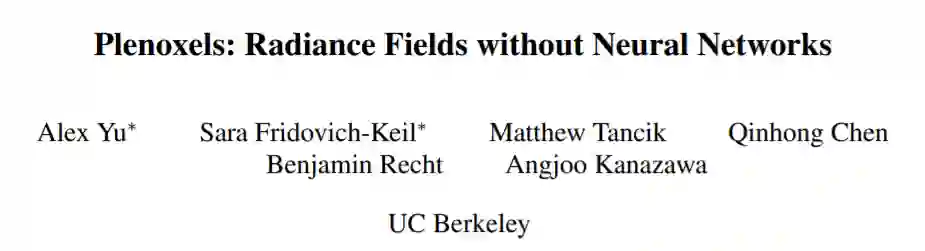 在一篇新论文中,来自加州大学伯克利分校的研究者瞄准了这一问题,提出了一种名为 Plenoxels 的新方法。这项新研究表明,即使没有神经网络,从头训练一个辐射场(radiance field)也能达到 NeRF 的生成质量,而且优化速度提升了两个数量级。