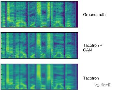 当使用端对端的语音合成TacotronTTS网络时,GAN可以增加部分真实的声音特性。如下图所示。