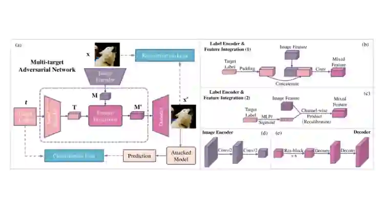 在这篇文章中,作者提出了一个多目标对抗网络(Multi-target Adversarial Network, MAN),该网络可以使用单个模型生成多目标对抗样本。通过将指定的类别信息合并到中间特征(intermediate features)中,该模型可以在运行过程中攻击目标分类模型的任何类别。