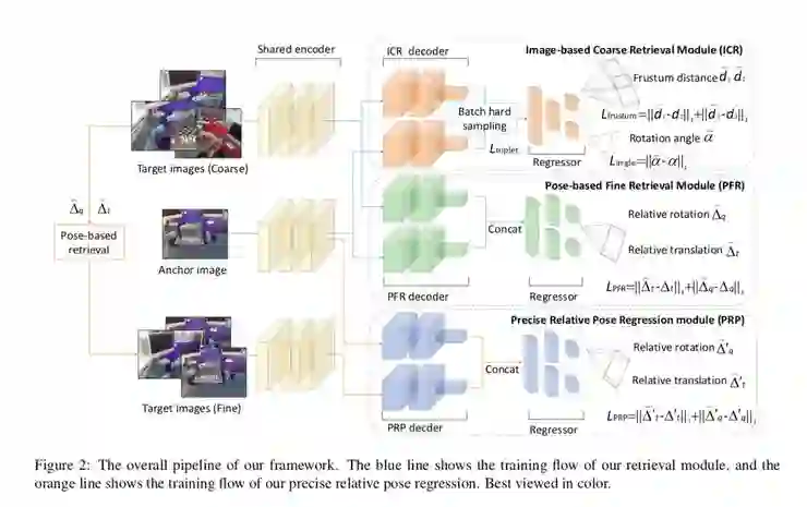 为此,作者提出了一种基于粗糙到精细(coarse-to-fine retrieval)检索的深度学习框架。该框架包括三个步骤:1)基于图像的粗糙检索;2)基于姿势的精细检索;3)精确的相对姿势回归。