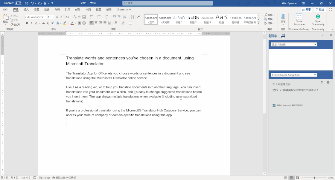 Translator 这款由微软官方出品的 Translator 插件,能够帮我们直接在 Word 里面将文章内容进行翻译。Translator 使用的是微软的翻译 API,能够支持将文档中选中的内容直接翻译替换,无论是在阅读非中文 Word 文档,还是自己撰写英语文章,Translator 都大大方便、简化了我们到浏览器里面复制翻译结果回来的复杂流程。
