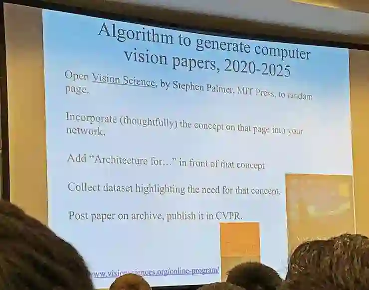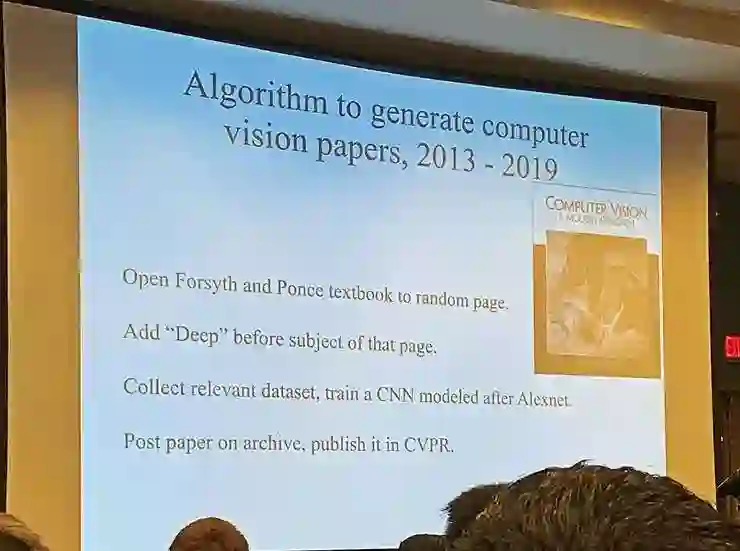 Bill Freeman 一开头也讽刺了过去五年的论文发表模式:翻到计算机视觉教科书的随便哪一页,在那一页讲的课题前面加上「深度」,收集一个相关的数据集,仿照 AlexNet 的样子训练一个 CNN 模型,然后就可以发表在 CVPR 了。