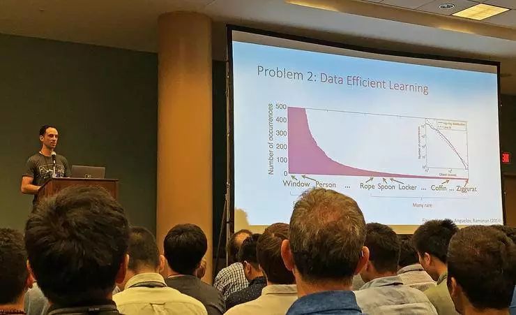 Facebook 人工智能研究院(FAIR)的研究科学家、目标检测界的领军人物 Ross Girshick 上午还在教学讲座,下午就在这个研讨会进行又一个演讲。