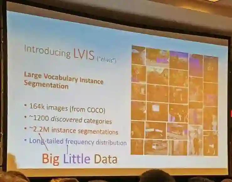 Facebook 探究这个问题的努力是设计了 LVIS 数据集。它基于的是 COCO 数据集中的图像,数据总量很大,但是样本量很小的数据类别也很多。非常多的实例分割标注,但是包含的长尾数据中也有数量很少的类别,这就是 Big Little 两个词的所指。