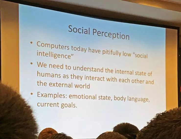 不过对于社交感知的现状,Malik 认为并不乐观:今天的计算机的社交智慧少得可怜;当人类之间互动、人类和外部世界互动时,我们需要能够理解人类的内部状态,例子比如情感状况、身体语言、当前目标