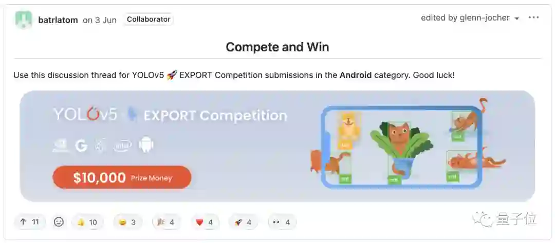 而且其实最开始YOLOv5就是作为一款对图像进行检测、分类和定位的iOS端APP进入人们的视野,而且APP还是由YOLOv5的作者亲自开发。