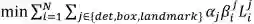 其中,第一项是平方和误差,表示人脸关键点损失函数,第二项是分类任务,采用的是交叉熵误差,第三项即正则项。