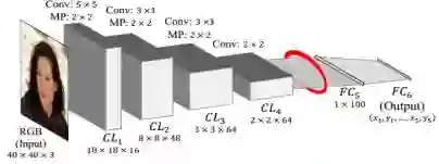 Level-3 与 Level-2 一样,由 10 个 CNN 构成,输入尺寸均为 15*15,每两个组成一对。Level-2 和 Level-3 是对 Level-1 得到的粗定位进行微调,得到精细的关键点定位。