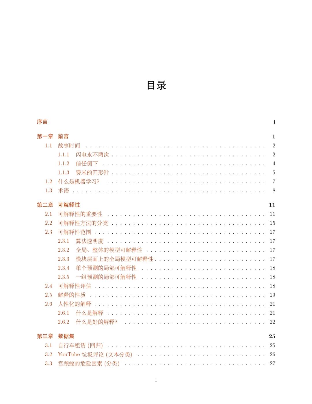 《可解释的机器学习》该书总共包含 7 章内容。章节目录如下: