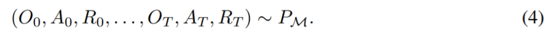 其中∆(A)表示动作空间 A 上的概率分布空间。公式 (3) 表明,该算法可以在环境中展开,以生成观察、奖励和动作序列。为了简单起见,该研究将算法用 P 表示,将环境(即任务)用的学习历史都是由算法