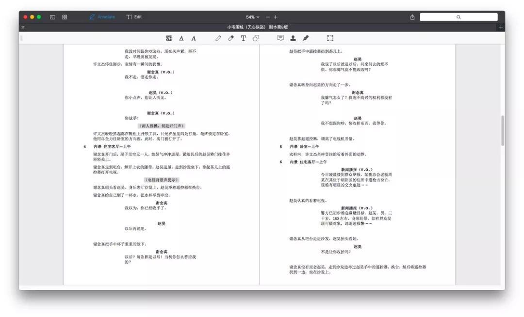 作为一个对格式有要求的编剧,我的剧本最终无论是电子版还是打印稿,格式都为 PDF,因此我会用 PDF Expert 来做最后的检查。