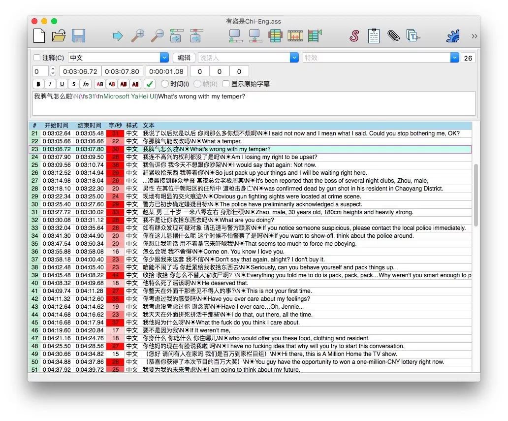 对白字幕推荐大家用人人影视御用字幕工具 Aegisub ,既可以根据画面调整字幕样式,又可以根据音频确定时间线。生成的 .ass 和 .srt 字幕文件即可外挂又可压制。