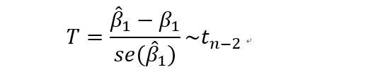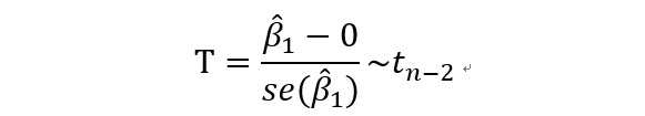回想一下t分布的定义,可以知道这里是服从自由度为n-2的t分布的。自由度的计算公式是样本个数减去带估计参数的个数。