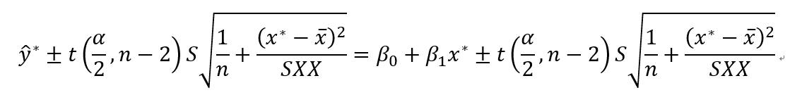 对于回归分析得到的回归方程,我们可以做两件事情,一个是对于给定的自变量的值,估计因变量的值;另一个问题是估计因变量的区间。估计值来说,相对比较简单,将自变量的值带进回归方程算一下就ok了。下面看一下怎么求置信区间。