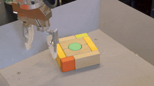 比如前面示范的抓积木,机器人可以把影响自己发力的其他积木推开,再抓自己需要的那块积木。