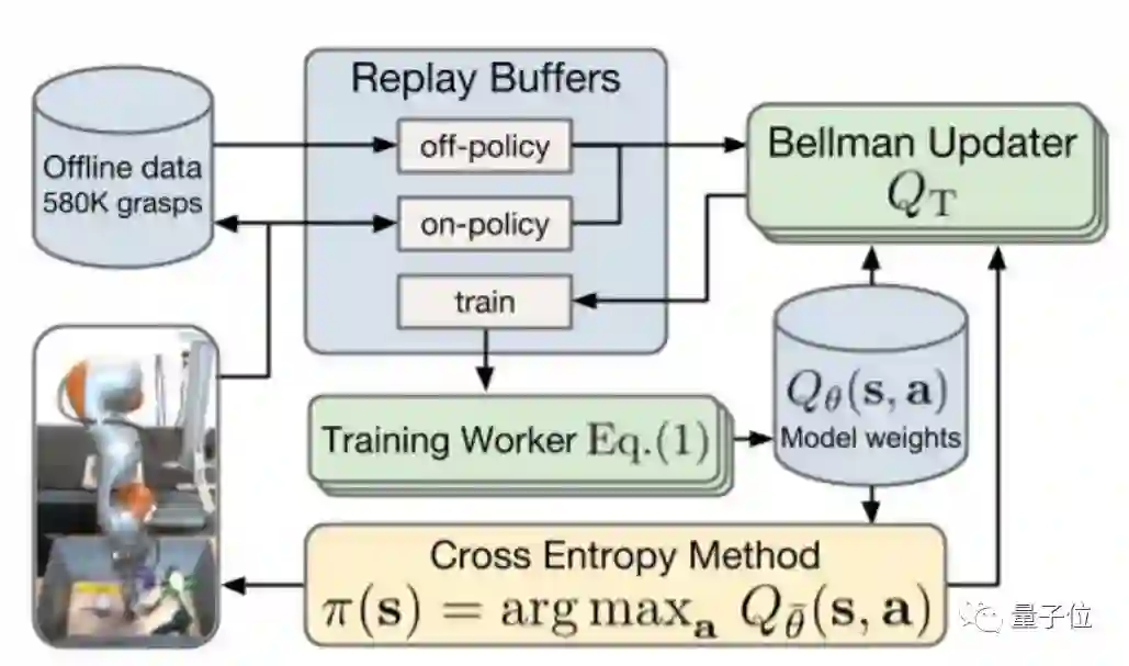 所使用的方法是深度强化学习,将大规模分布式优化和新型拟合深度Q学习算法——QT-Opt相结合,来让机器人从过去的每一次训练中学习,获取经验。