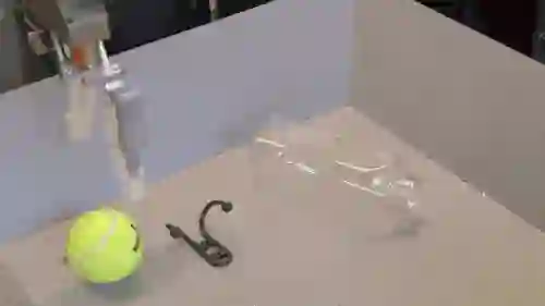 如果目标物体和其他东西连在一起,机器人会主动把它分开然后抓取。