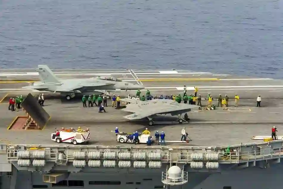 2014年8月,美海军首次进行有人驾驶舰载机与舰载无人机在航母上共同起降。在试验中,两架F/A-18“大黄蜂”战斗机和一架X-47B舰载无人机以相同的模式从“罗斯福”号核动力航母上起飞,以此来测试这种舰载无人机的起飞和降落能力。有人机与无人机协同作战难在空中控制,美国今后研究的重点是无人机的空中控制能力。