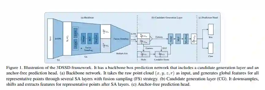 本文首次提出了一种轻量级且高效的基于点的 3D 单阶段目标检测框架,并引入了一种新颖的融合采样策略,以删除费时的 FP 和优化模块。在预测网络中,候选生成层利用降采样的代表点进一步降低计算成本。本文提出的带有 3D 中心标签的无锚回归头提高了最终性能。所有这些有效的设计使本文的模型在性能和 inference 时间方面都表现更加出色。