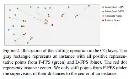 已有的工作是在得到每个点的特征后接三层 SA 分别用于中心点选择、周围点特征的提取以及生成语义信息。本文为进一步降低计算成本,候选中心点的生成是直接在 F-FPS 采样后进行的。F-FPS 采样的点由于比 D-FPS 的点更加可能是前景点,所以候选点仅仅只是在 F-FPS 的点上生成。接着作者将这些候选中心点当作候选生成层的中心点。最后根据候选中心点领域选择从 F-FPS 和 D-FPS 中采样得到的代表点进行局部特征提取,采用 MLP 进行特征提取。