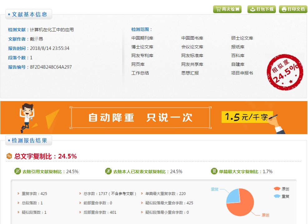 ►PaperPass:标黄部分为学生论文与已发表文献相似部分