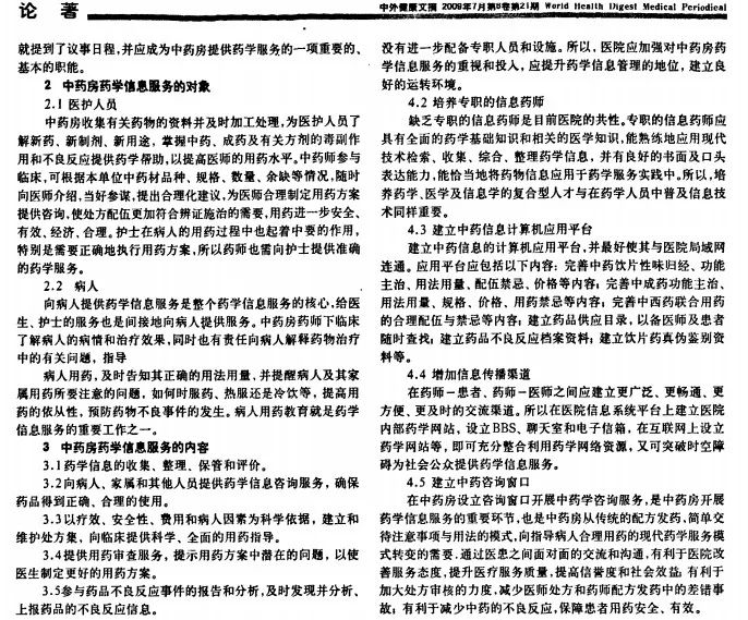 2、重庆巴蜀中学陈同学的“试论中药房的药学信息服务”(2018年6月发表于《现医学与健康研究)