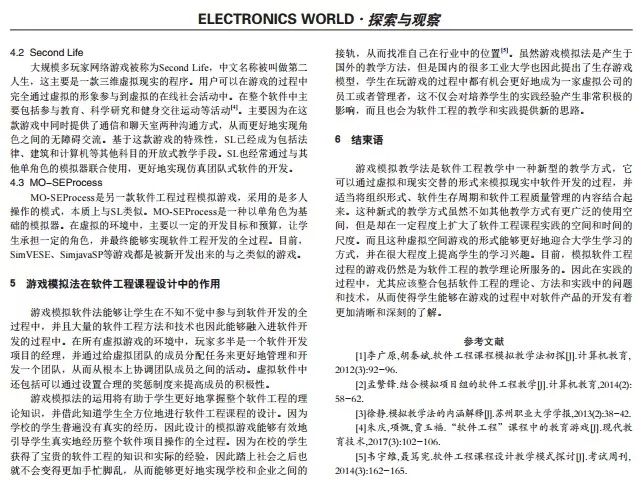 3、长沙长郡中学肖同学的“小议游戏模拟法在软件工程课程设计中的应用”(2018年2月发表于《电子世界》)
