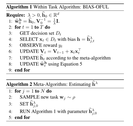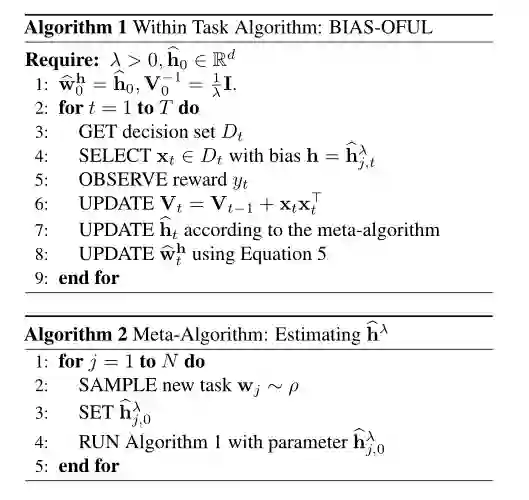 摘要:我们研究了随机线性bandits任务背景下的元学习过程。我们的目标是选择一种学习算法,该算法在从任务分布中抽样的一类bandits任务中平均表现良好。受最近关于学习到学习线性回归的工作的启发,我们考虑了一类bandits算法,它实现了著名的OFUL算法的正则化版本,其中正则化是到偏差向量的欧几里得距离的平方。我们首先从遗憾最小化(regret minimization)的角度研究了有偏差的OFUL算法的好处。然后,我们提出了两种策略来估计学习到学习环境中的偏差。理论和实验都表明,当任务数量增加,任务分配方差较小时,与孤立的学习任务相比,我们的策略具有明显的优势。