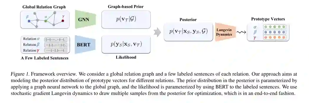 摘要:本文研究的少样本关系抽取,其目的是通过对句子中的一对实体进行训练,并在每个关系中添加少量的标注示例来预测其关系。为了更有效地推广到新的关系,本文研究了不同关系之间的关系,并提出利用全局关系图。我们提出了一种新的贝叶斯元学习方法来有效地学习关系原型向量(prototype vectors)的后验分布,其中原型向量的初始先验是通过全局关系图上的图神经网络来参数化得到的。此外,为了有效地优化原型向量的后验分布,我们提出使用与MAML算法相关但能够处理原型向量不确定性的随机梯度Langevin 动力学。整个框架可以以端到端的方式进行高效的优化。在两个基准数据集上的实验证明了我们提出的方法在少样本和零样本设置下相对于具有竞争性的基准模型的有效性。