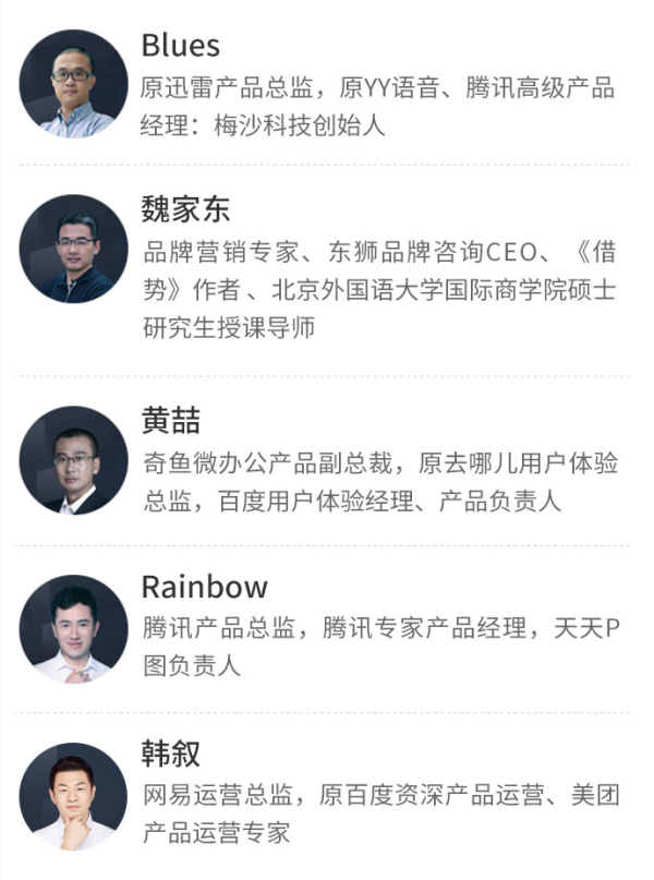 从他们身上,你将学到来自一线大厂的、已被验证的产品、运营科学方法论,以及只有通过多年实战、试错、反思和总结,才能深刻理解的专业思维和技巧。