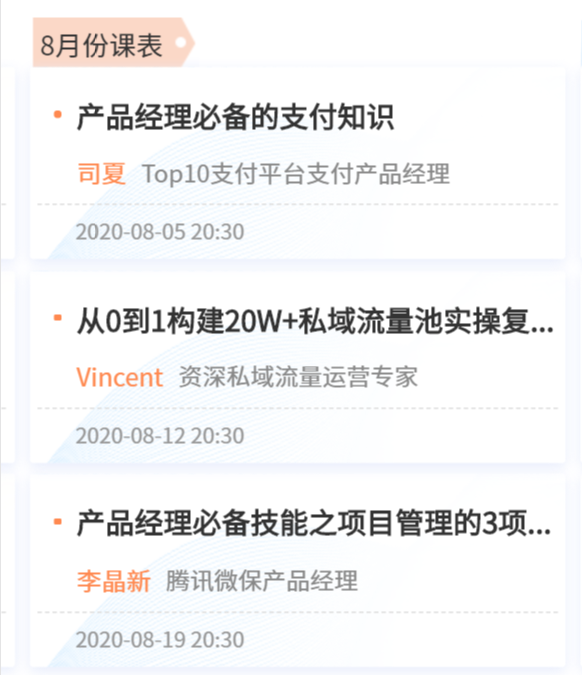 全年36+场VIP专属直播课,各大互联网公司的项目负责人直播间现身说法,实时互动。给你分享产品、增长、营销等主题的实战案例心得,提供可迁移、可复用的经验方法。