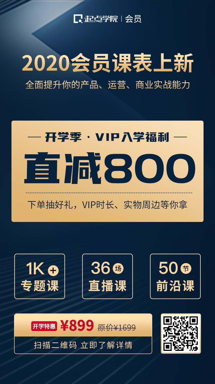 VIP可免费学习起点学院1000+门线上录播课,这些精选课程覆盖了产品、运营、营销增长等领域的基础与前沿实战内容,每年持续更新200+新课,帮你全面提升实战能力。