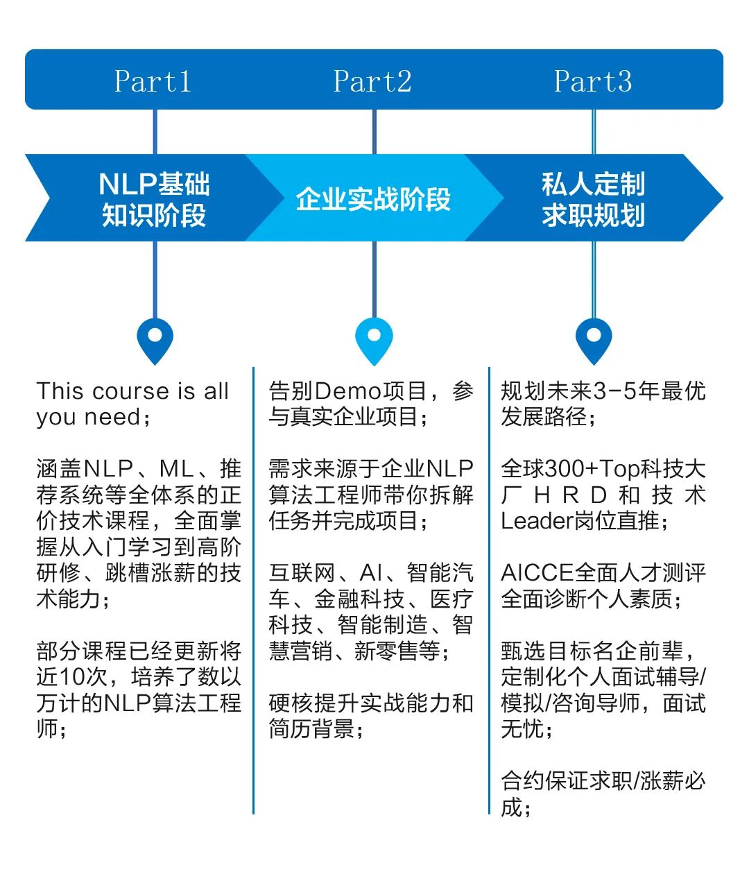 通过本计划,学员一定可以拿到不止一个高质量NLP岗位的offer,实现求职涨薪飞跃。我们相信本计划将根本解决广大NLPer的求职难题,并持续深刻影响职业生涯发展。