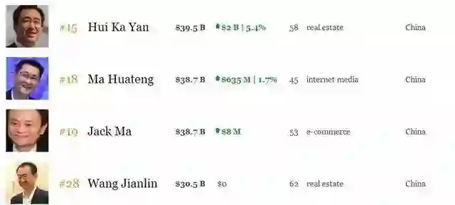 近日,中国恒大股价不断创出新高,因而许家印得到这一殊荣也不足为奇。而马化腾则以微弱的差距位居第二,其财富则是388亿美元。名列第三的则是马云,其财富与马化腾之间的差距也相当小。之前备受关注的王健林则排名第五。从福布斯发布的名单来看,在中国前七位富豪中便有3位是科技出身,还有三位则具有房地产背景。