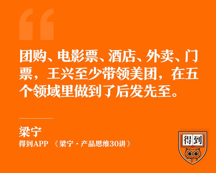 团购、电影票、酒店、外卖、景区门票这些业务他都不是第一个做的,但是他连续做到了后发先至。
