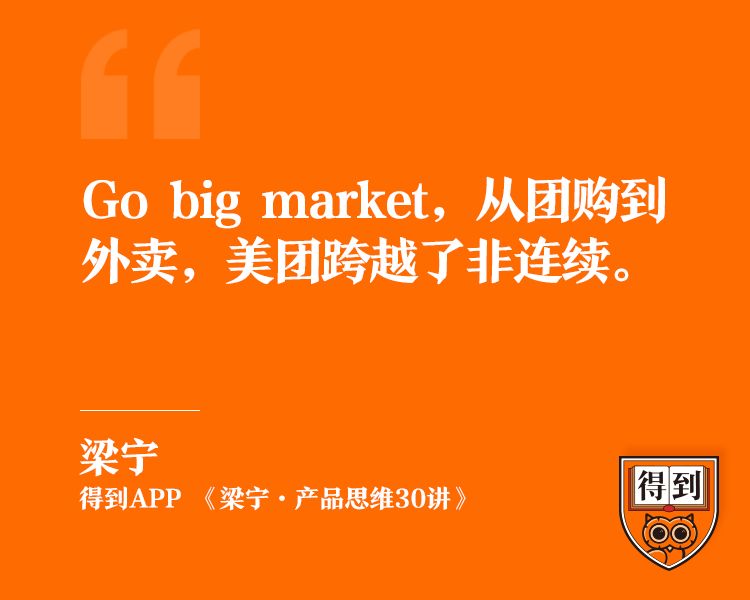 所以,go big market。从团购到外卖,美团跨越了非连续。