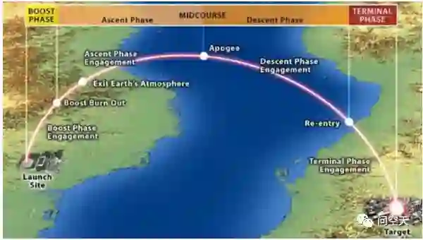 远程弹道导弹的飞行过程通常分为主动段、中 间段和再入段三大部分,如图1所示。当导弹进入 飞行中间段时,执行弹箭分离,弹头红外特征明显降